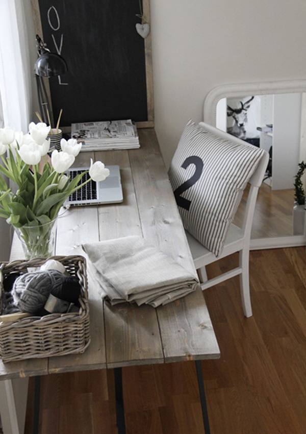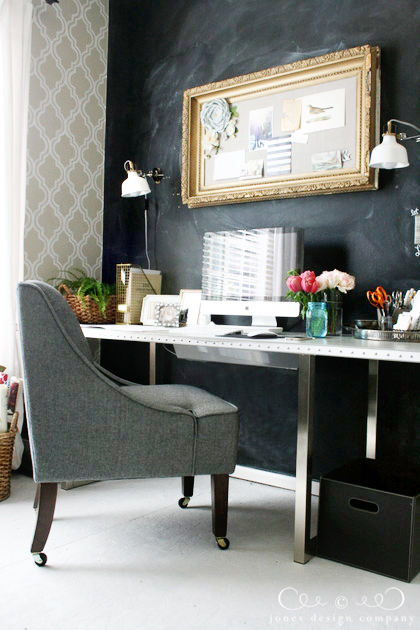 Creating a home office does not have to break the bank. There are many DIY options out there. Start with what you have and think about how you can alter it with either paint or stain, fabric and appliqués such as nail heads, wallpaper, or moulding. Here are a few ideas to get you started.