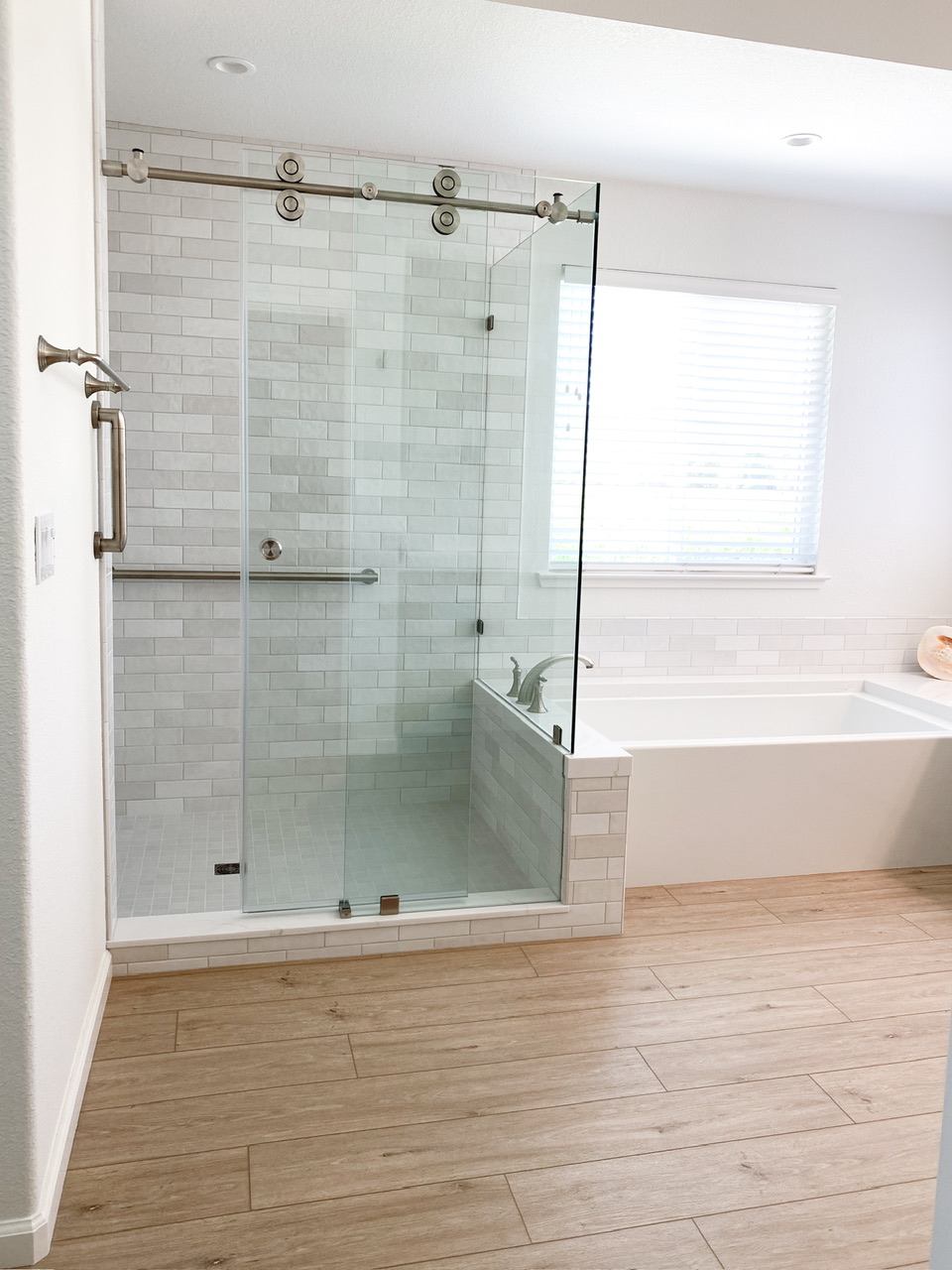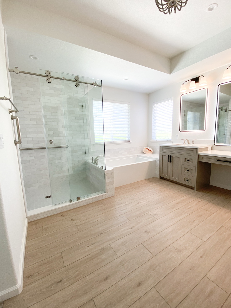 For this project, we completely gutted the outdated primary bathroom, creating a space that is both functional and timeless. While keeping the plumbing in its original locations, we introduced all-new features, including beautiful tile, modern fixtures, custom cabinetry, and updated lighting.
