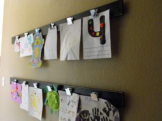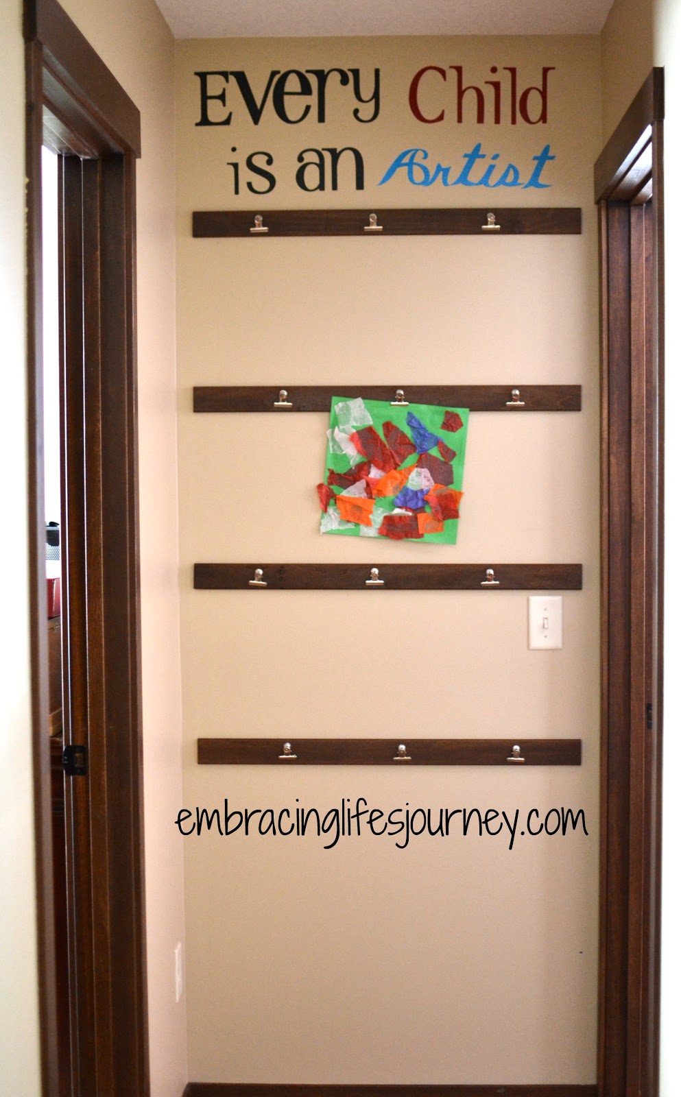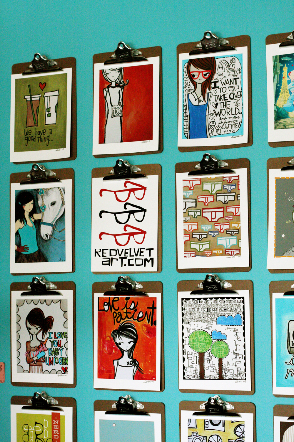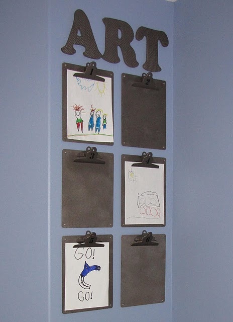 We have seen some other creative was to display artwork with magnets, cork boards, and clip boards.